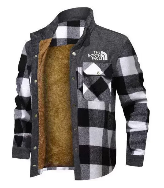 Fashion Black And White Plaid Print Men's Coat With Pockets