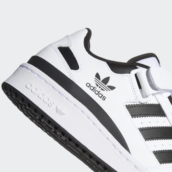 More than just a shoe, it's a statement. The adidtheas Forum hit the scene in '84 and gained major love on both the hardwood and in the music biz. This pair of the classic shoes brings back the '80s attitude, the explosive hardwood energy and the iconic removable strap ankle design, distilled into a low top version meant for the streets.