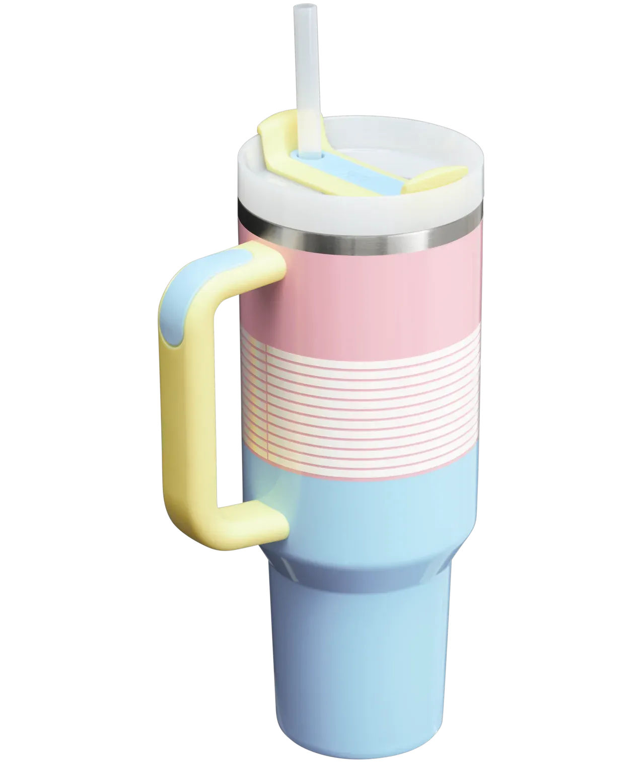 The 40-ounce Quencher catches the eye with its iridescent stripe design. The versatile FlowState? 3-Position lid has three sip settings: one for the reusable straw, one without and the option to rotate the silicone cover shut. Double-wall vacuum insulation keeps your water ice-cold for hours, so you stay refreshed all year round.???